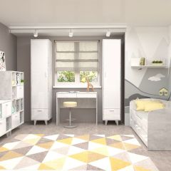 Детская Эго, модульная (на ножках) Бетон светлый/Белый глянец