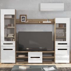 Гостиная МГС 6 Исполнение 1 (Дуб золотой/Белый глянец)