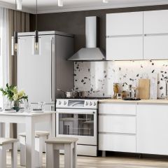 • МДФ — это самый популярный вариант. Панель из трамбованных опилок ламинируется, после чего ей не страшны жидкости и пары;
