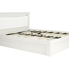 Эта модель, без сомнения, станет главным украшением вашей спальни: выбеленный оттенок, изящное изголовье с мягкой вставкой, резные детали.