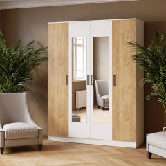 ЛАРС Шкаф комбинированный 1,6 с зеркалом Белый/ Дуб крафт золотой