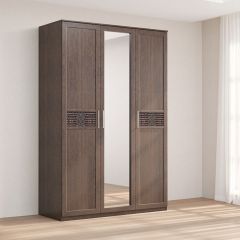 Кэт-4 Шкаф 3-х ств (1 зерк) (МДФ Венге/Экокожа Caiman Коричневый)